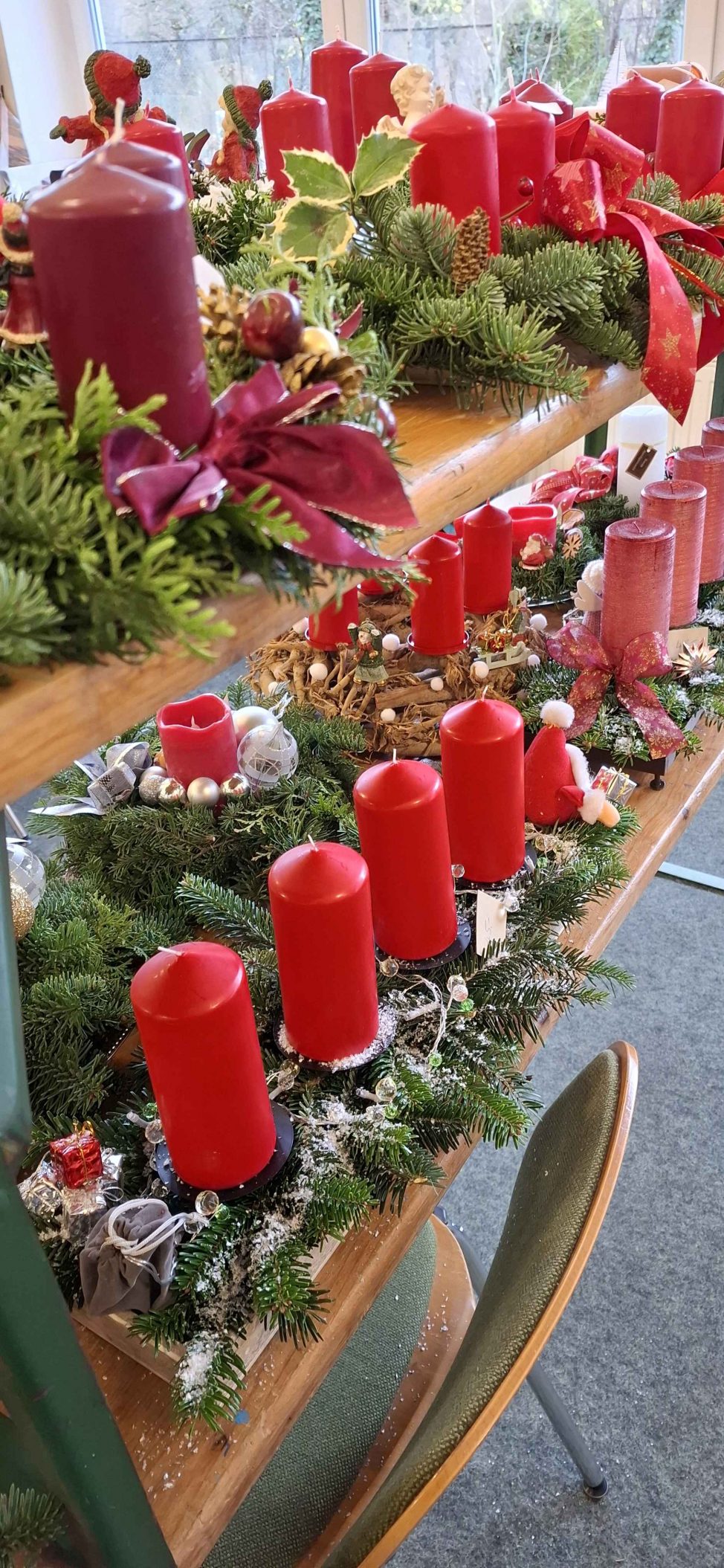 Natürlich ist auch wieder das Team der Kranzbinderinnen aktiv und bereitet zahlreiche Adventskränze und Gestecke in verschiedenen Größen und Farben vor. Hierfür benötigen wir jedes Jahr reichlich frisches Tannengrün, insbesondere Nordmanntanne. Wenn Sie uns damit unterstützen können, melden Sie sich gerne im Gemeindebüro. Auch helfende Hände sind in der Vorbereitungswoche herzlich willkommen.