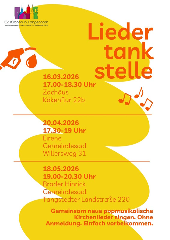 Für Pfingstmontag suche ich SängerInnen, die gemeinsam mit mir popularmusikalische Lieder vorbereiten, um den Gottesdienst in Broder Hinrick vielfältig zu gestalten. Jede Stimme ist willkommen und ich werde das Niveau an den entstehenden Chor anpassen. Proben finden an folgenden Tagen im Gemeindesaal der Broder Hinrick Gemeinde statt: 4. Mai 17:30 – 19:00 Uhr 11. Mai 17:30 – 19:00 Uhr 18. … Read More